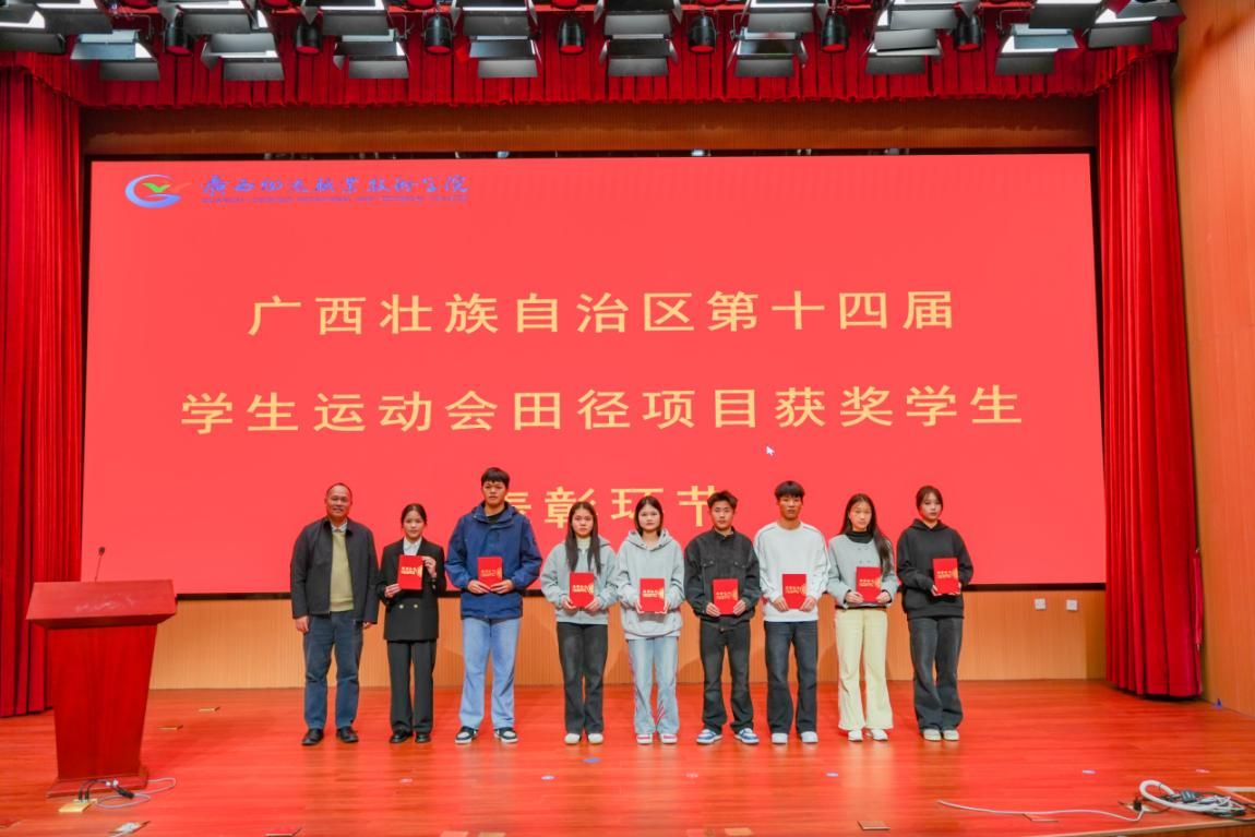 为广西壮族自治区第十四届学生运动会田径项目获奖学生颁奖