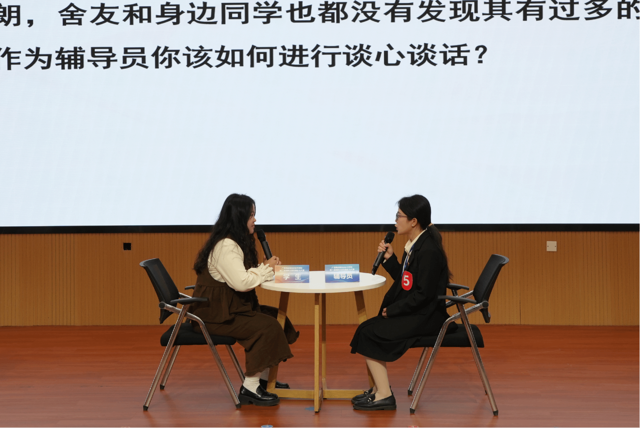 本次大赛特邀广西水利电力职业技术学院、南宁职业技术大学、柳州铁道职业技术学院、广西制造工程职业技术学院学生工作部负责人,与我校党委学生工作部负责人共同担任决赛评委。大家一致认为,辅导员开展工作需注重倾听技巧、共情表达与引导艺术,切实提升育人实效。